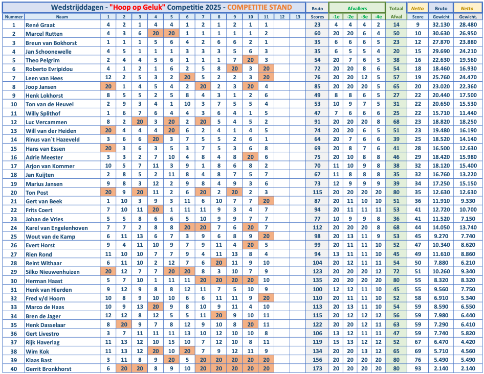 Afgelopen zaterdag 18 oktober werd de 11de wedstrijd om het clubkampioenschap gevist.