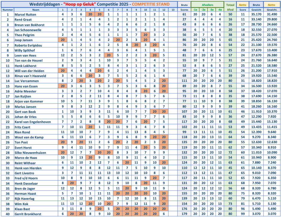 Maar het onverwachte gebeurde toch Marcel won zijn vak met een mooi gewicht en René wist niet te winnen. Een anti climax.
