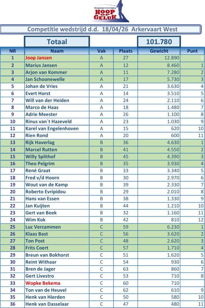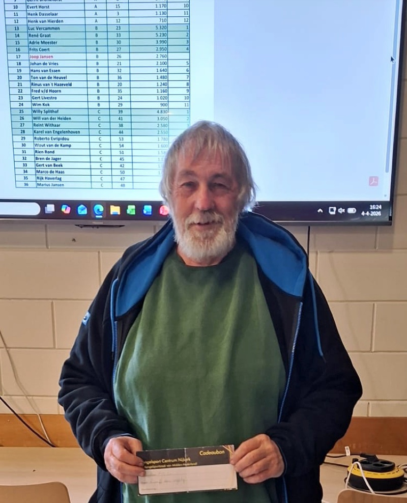 In het B-vak leverde Rijk Haverlag een fraaie prestatie door het B-vak te winnen met 4630 gram.