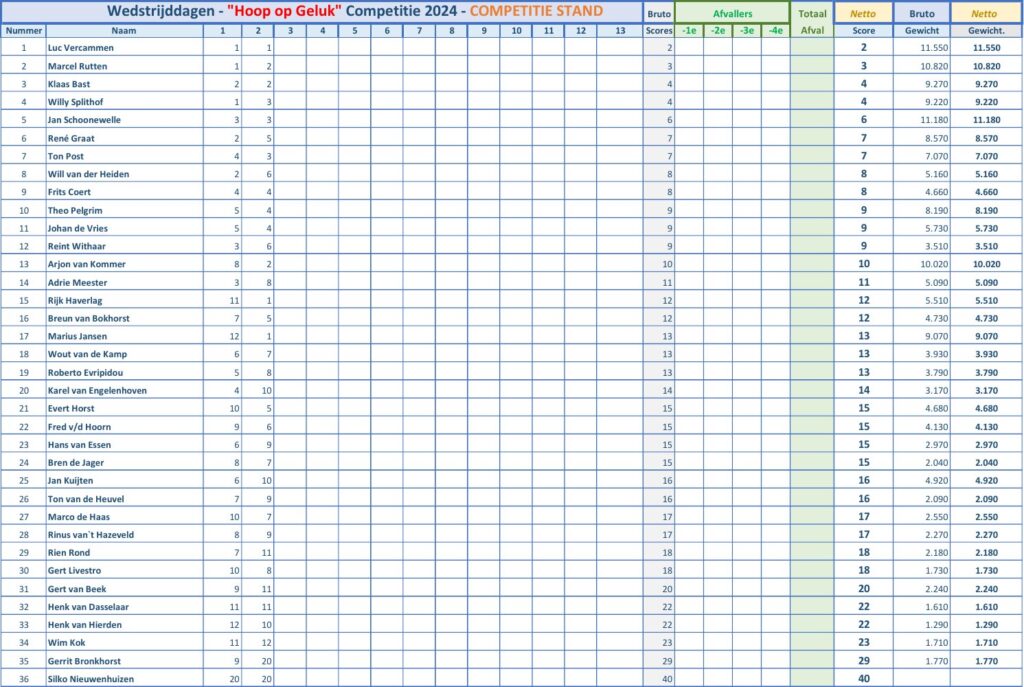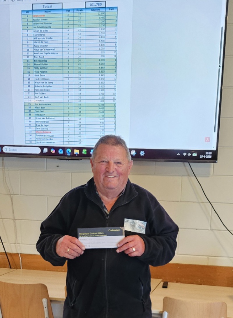 Luc Vercammen wist op plaatsnummer 59 het C-vak te winnen met ruim 6 kg.